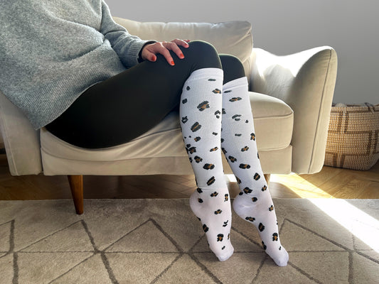 White Leopard Print Compression Socks