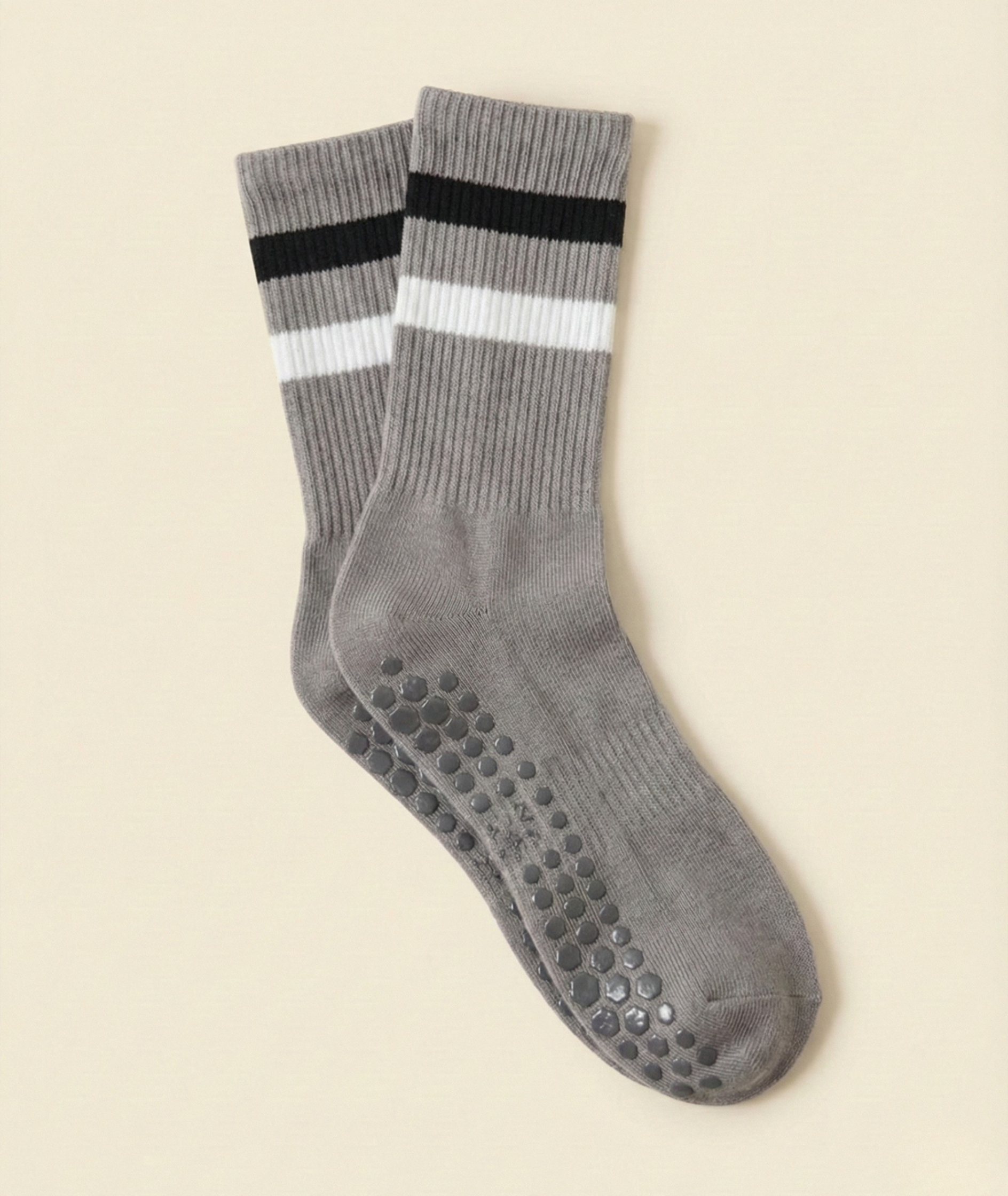 Grey Striped Pilates Grip Socks