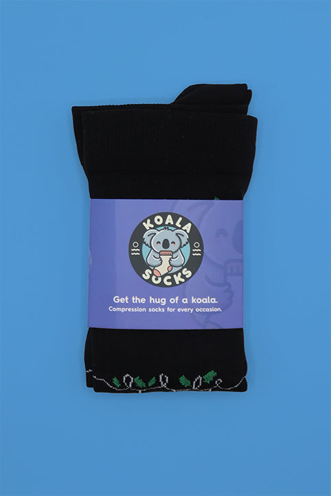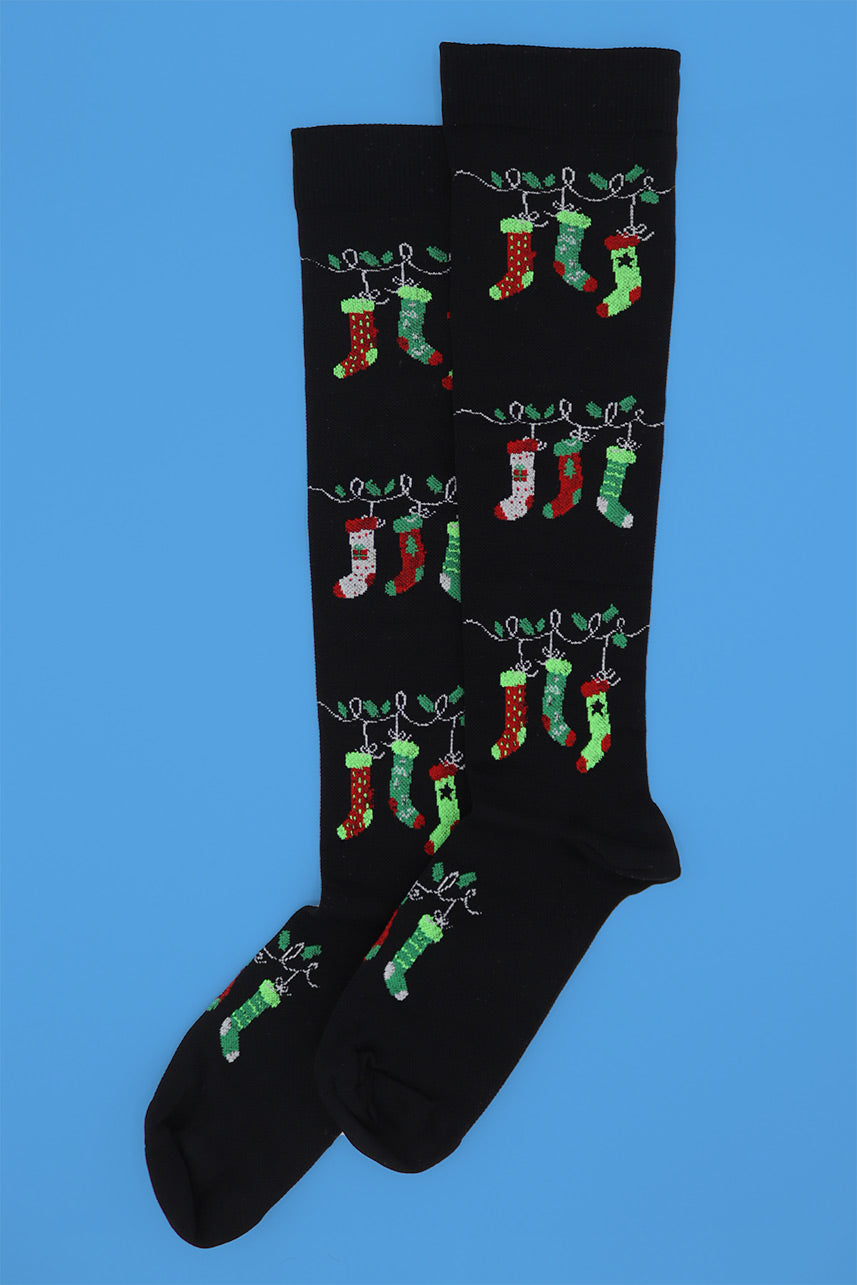Popping against the bold black background, our Christmas Stockings Compression Socks feature a much loved sight by kids and adults all around the world. Hung stockings in festive green and red adorn the design, the perfect gift for anyone who loves this special time of year.