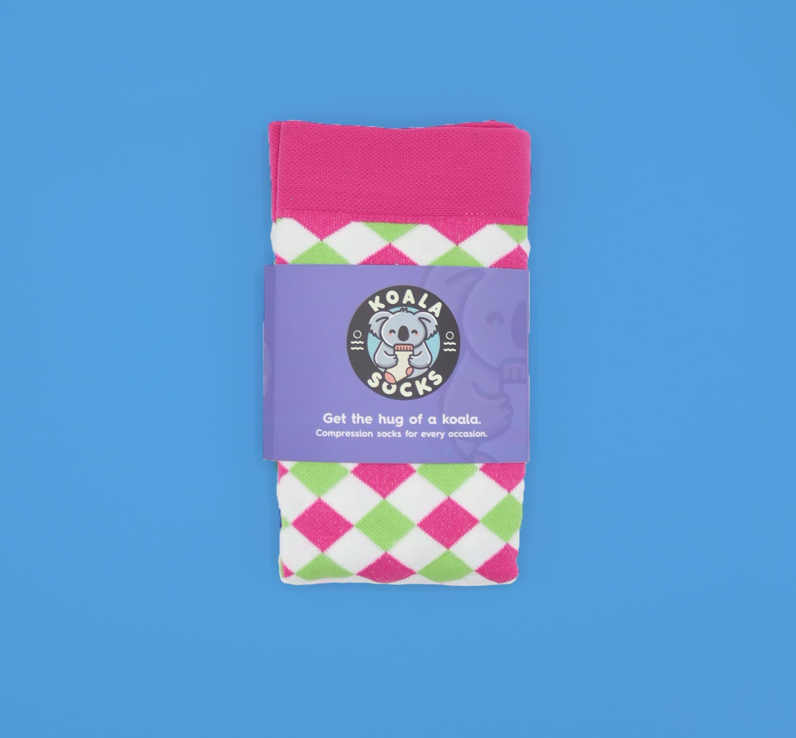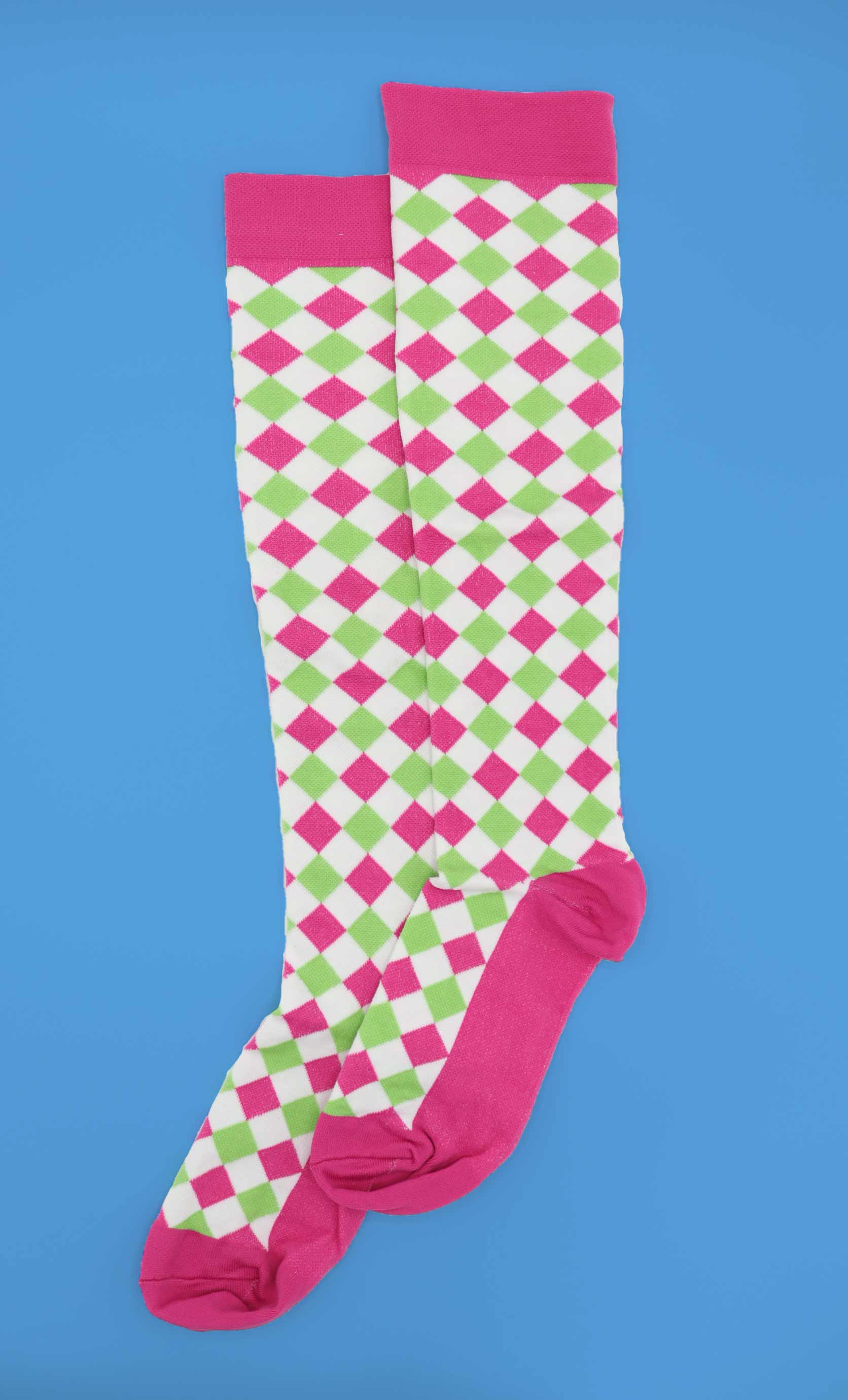 Our Pink & Green Patterned Compression Socks are a vibrant way to express your personality on your feet, and turn heads wherever you go!