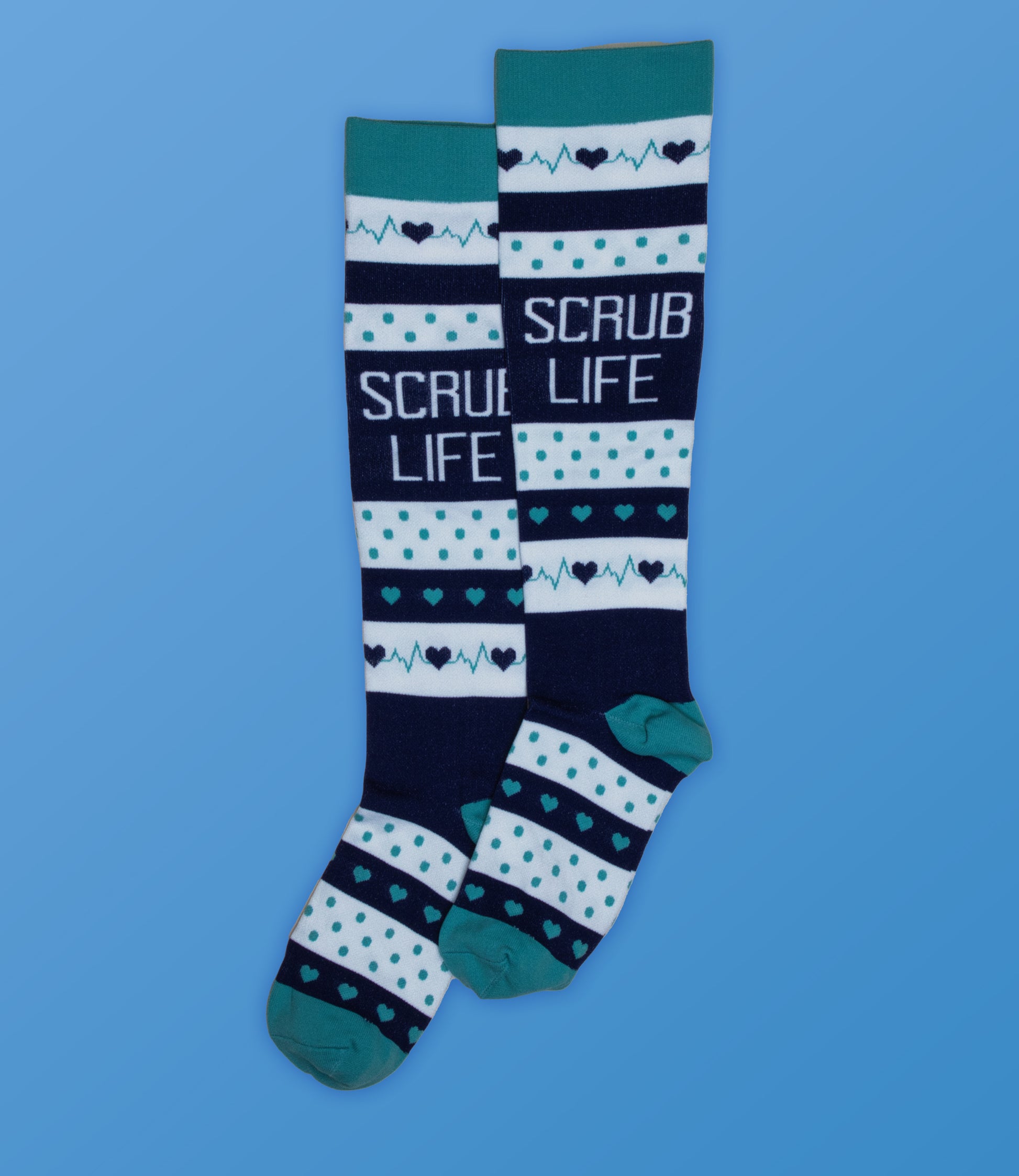 Rock the medical-ceuticals as you go about your scrub life with these Compression Socks! Feel comforted knowing you have the best of style and performance with these socks, featuring a snug fit that won’t let you down. Show off those legs with confidence! #scrublife